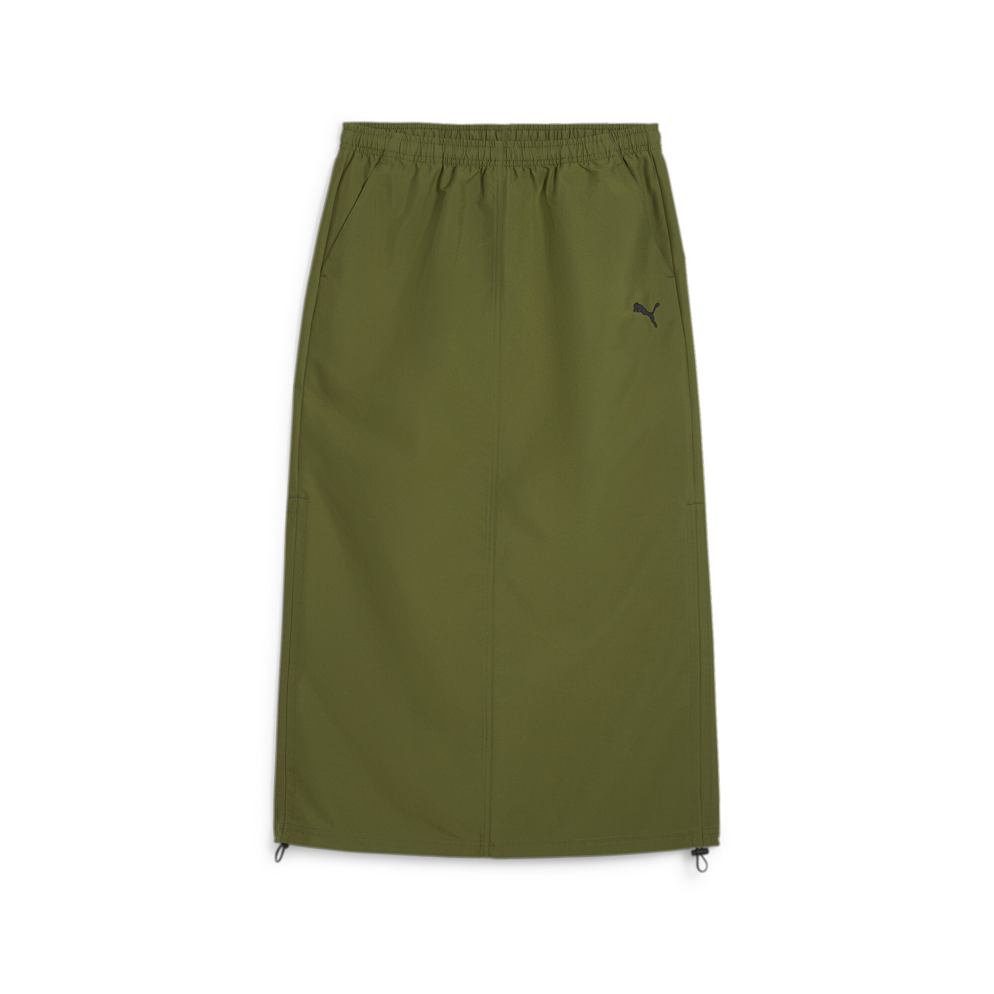 The skirt has a standard fit and a side seam with elasticated drawstring for a perfect fit. The elasticated waistband with external drawstrings and plastic tips provides an adjustable fit. Made from 100% recycled material with a density of 129g/m², no trimmings or decorations, with a PUMA Cat logo embroidered on the left side.