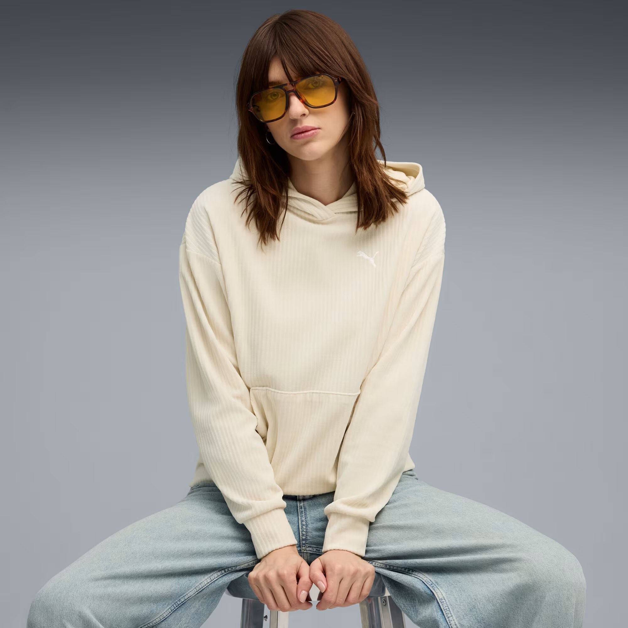 The Puma Ess Elevated Comfort Velour Rib hoodie for women is made for those who value softness, coziness and style all in one look. Ribbed velour knit provides a soft touch and elegant look, while the straight cut and dropped shoulders create a relaxed, feminine fit.