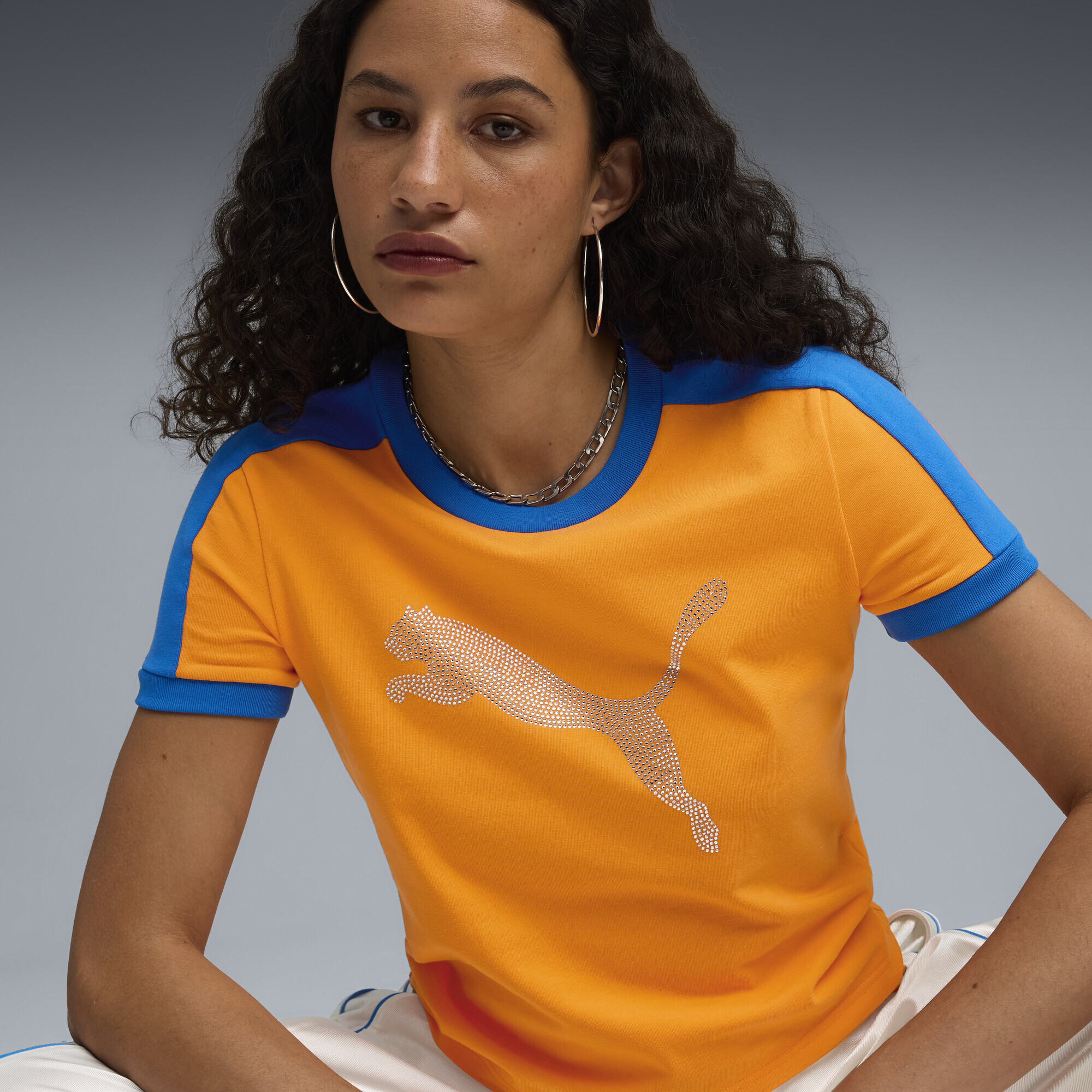 • Rhinestone Puma Cat logo on the chest