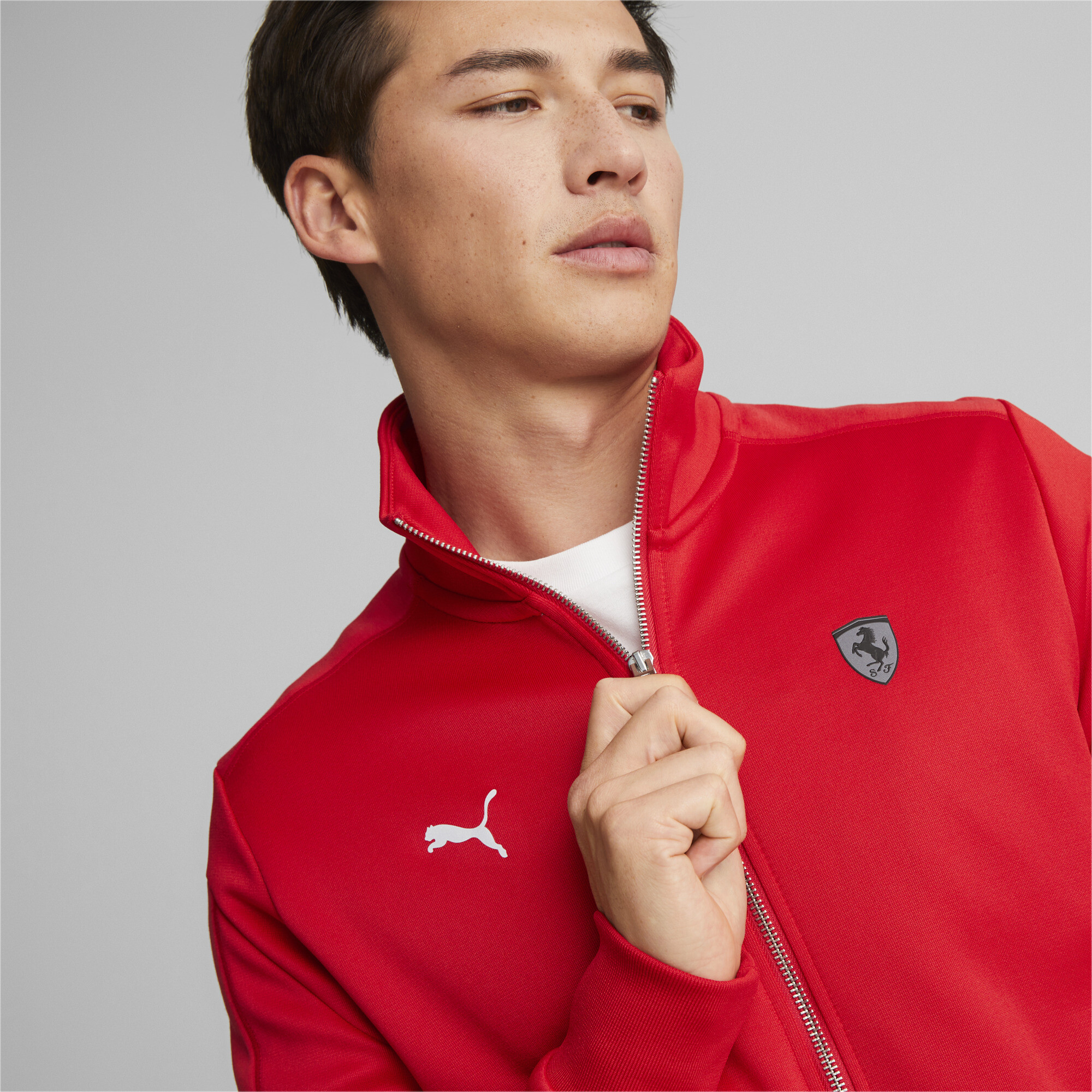 The sporty-chic look of the sleeve panels and the iconic Scuderia Ferrari team logo on the chest exude confidence, sophistication and a true spirit of speed.