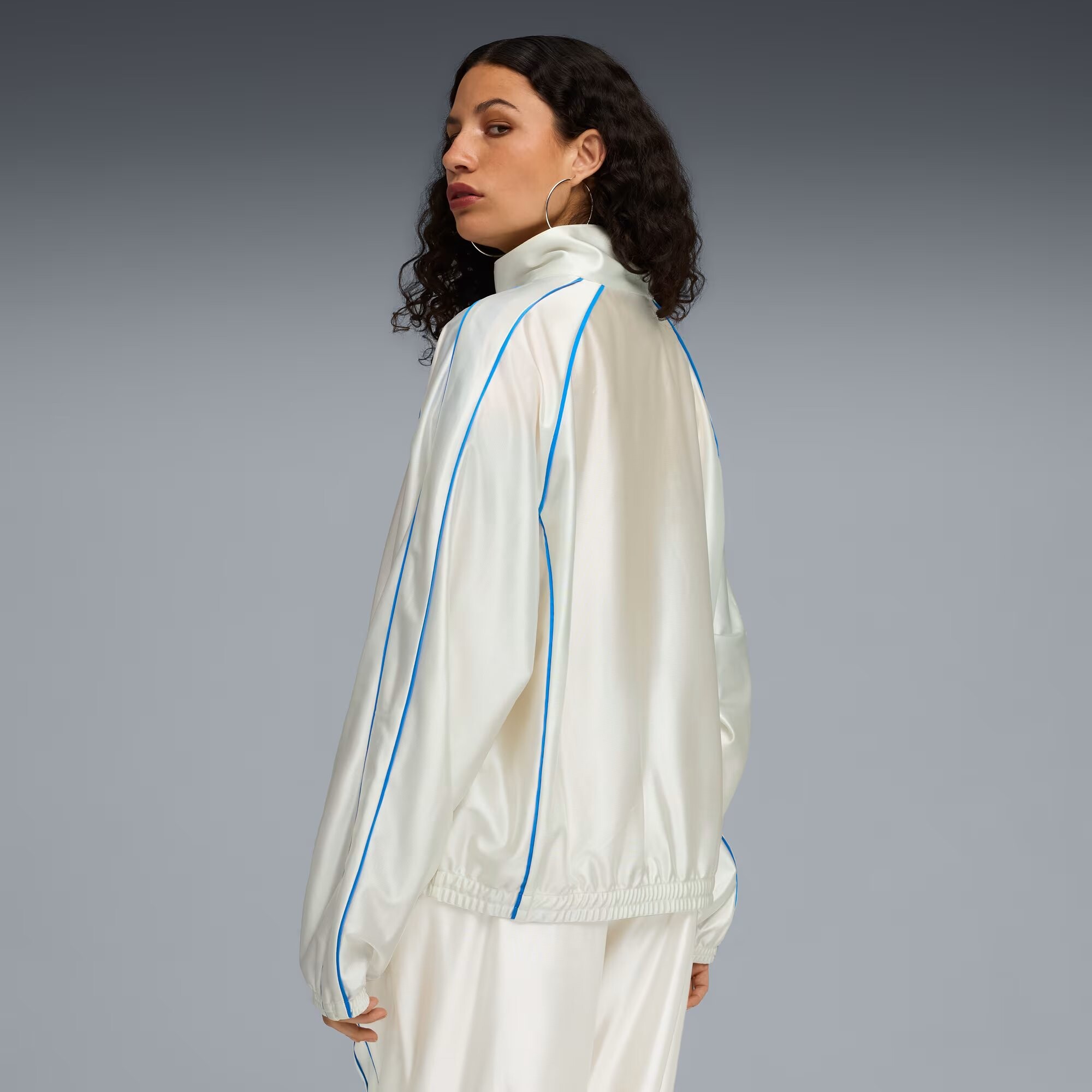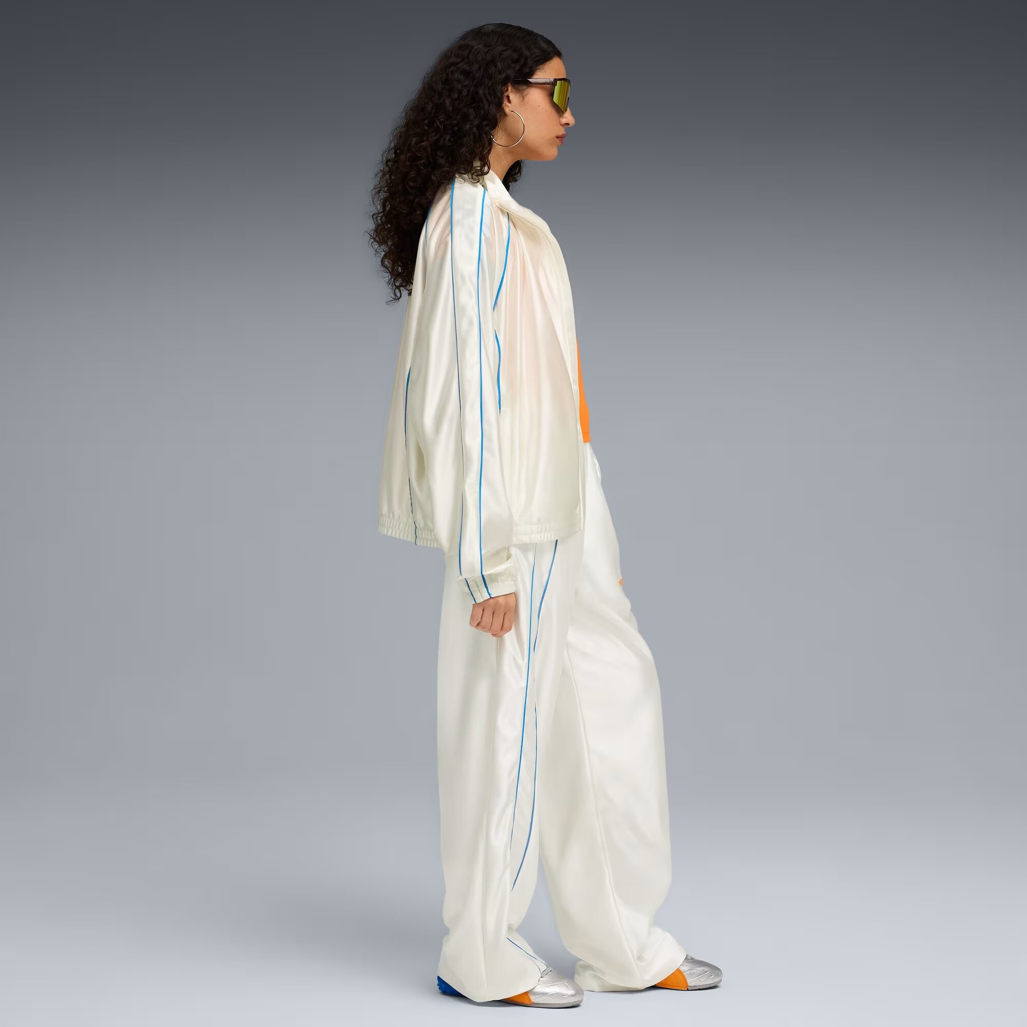 Олимпийка Puma x Fenty T7 Piping - это смелое переосмысление классического спортивного силуэта в фирменном стиле Рианны. Модель сочетает эстетику уличной моды с элементами винтажного спортивного дизайна, создавая уверенный и выразительный образ.