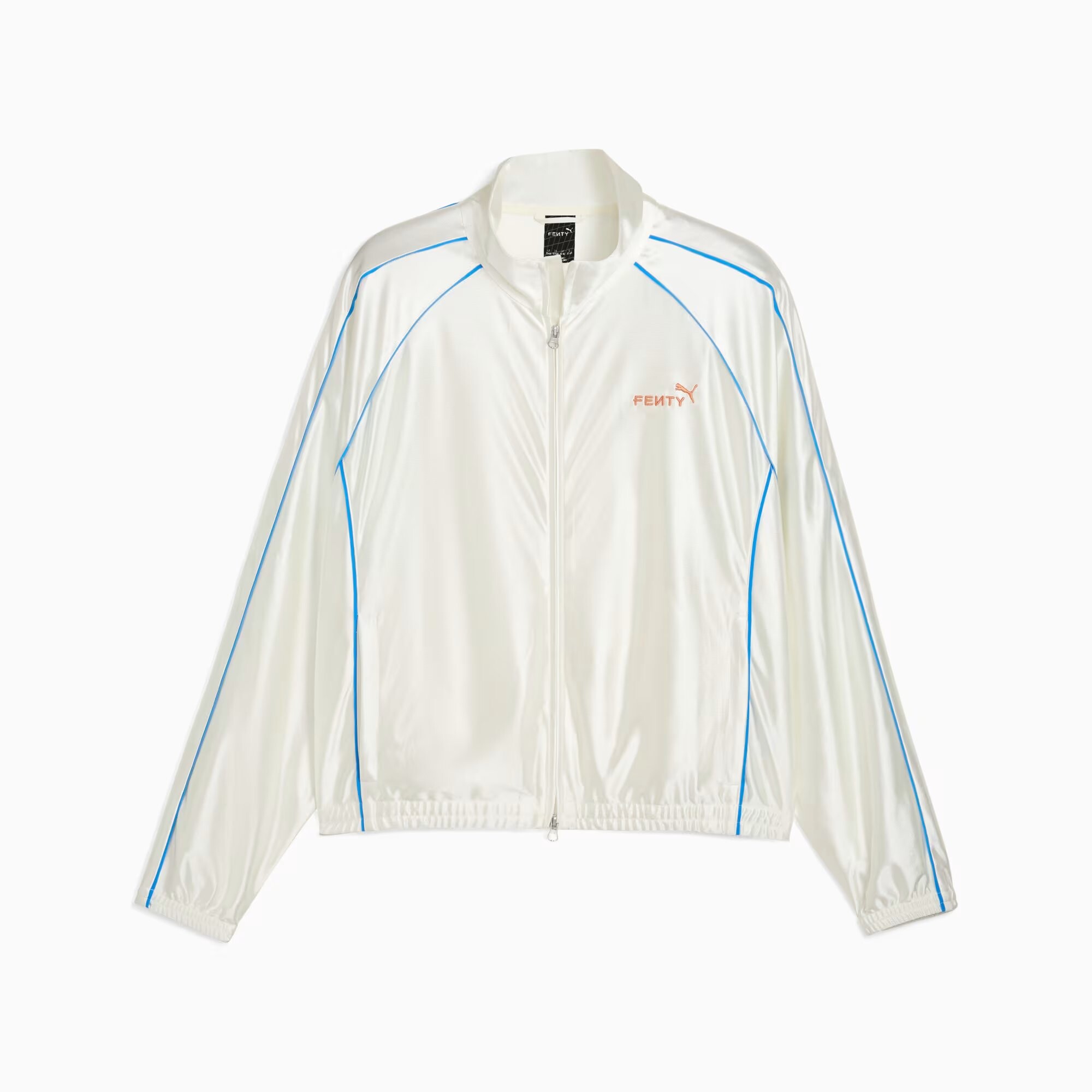 Контрастные окантовки PUMA T7 по бокам подчёркивают спортивное наследие бренда, а вышитый логотип FENTY x PUMA Cat на груди добавляет премиальный акцент. Эластичные манжеты и подол обеспечивают комфорт и идеальную посадку.