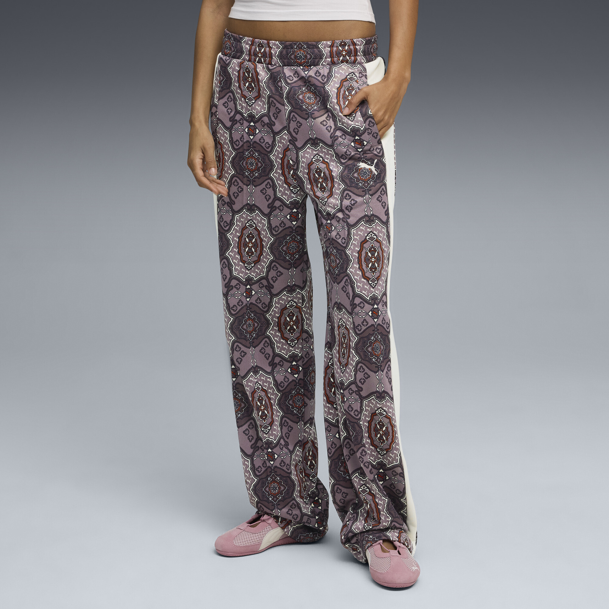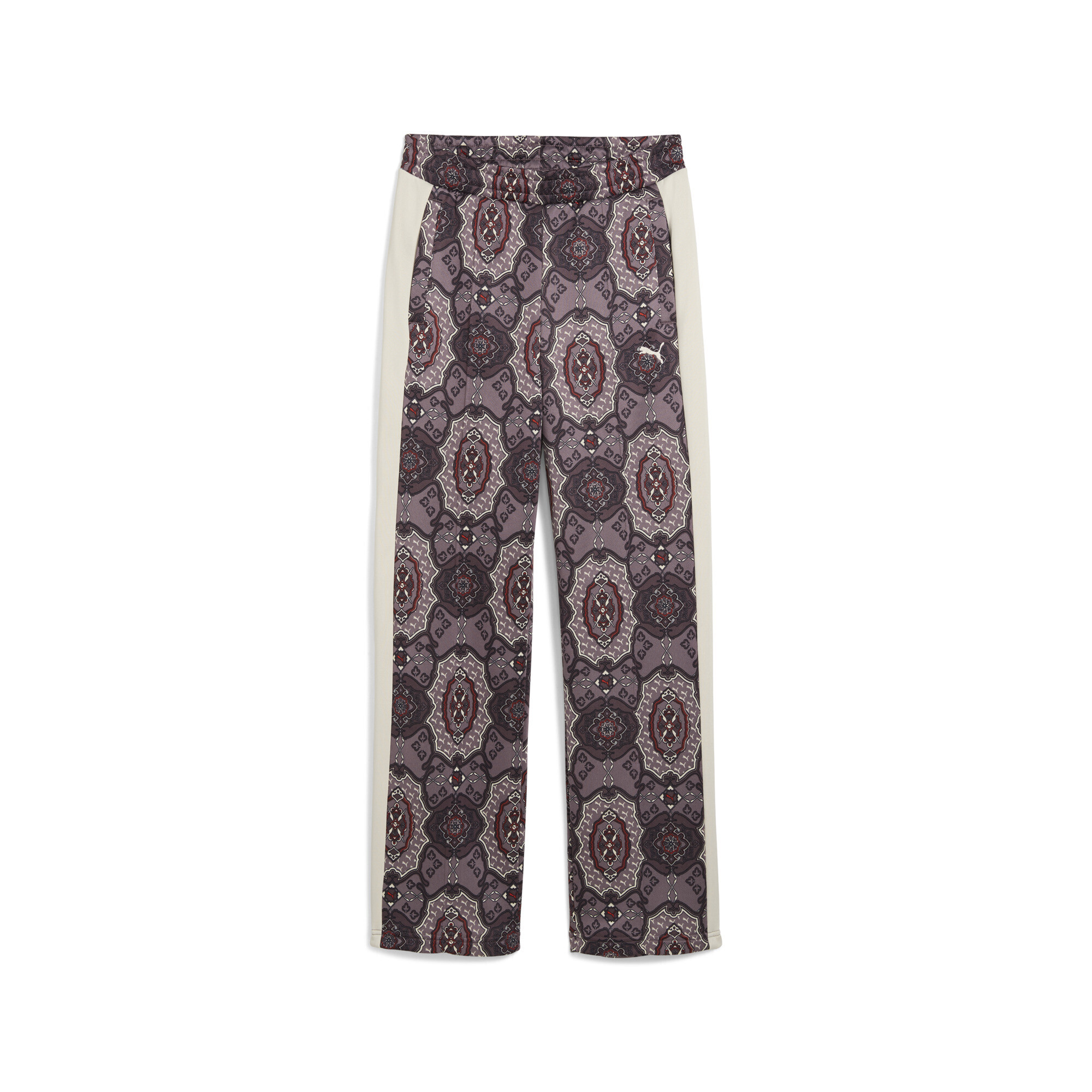 Штаны Puma T7 Vintage Prep All-Over Print - это переосмысление культовой спортивной классики, сочетающее наследие бренда и современные тренды уличного стиля. Модель сохраняет узнаваемые черты линии T7 - прямой силуэт, боковые вставки и расслабленную посадку - но представлена в обновлённом исполнении с акцентом на комфорт и выразительный дизайн.
