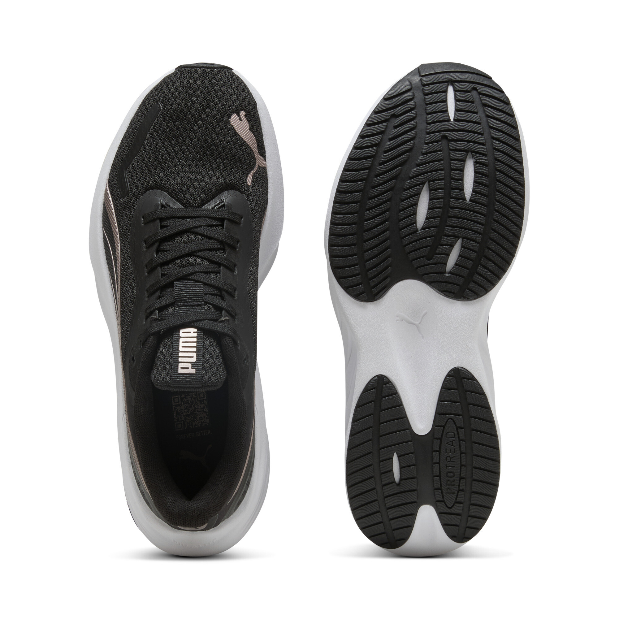 Инновационная пена PUMALITE в промежуточной подошве обеспечивает превосходную амортизацию, эффективно смягчая удары при каждом шаге. Она снижает нагрузку на суставы, дарит комфорт во время бега и делает движения более плавными и упругими. Подошва с технологией PROTREAD имеет зонированную конструкцию: прорезиненные участки расположены в ключевых местах, обеспечивая надежное сцепление с разными поверхностями.