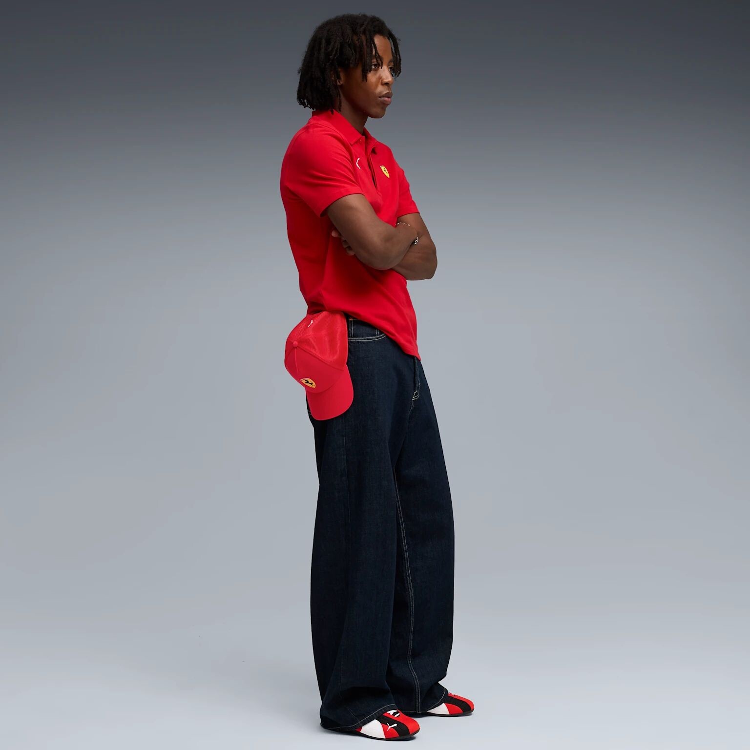 Фирменные логотипы Puma Cat и Scuderia Ferrari на груди служат элегантным акцентом, подчёркивая приверженность высоким стандартам, страсть к деталям и безупречное чувство стиля.