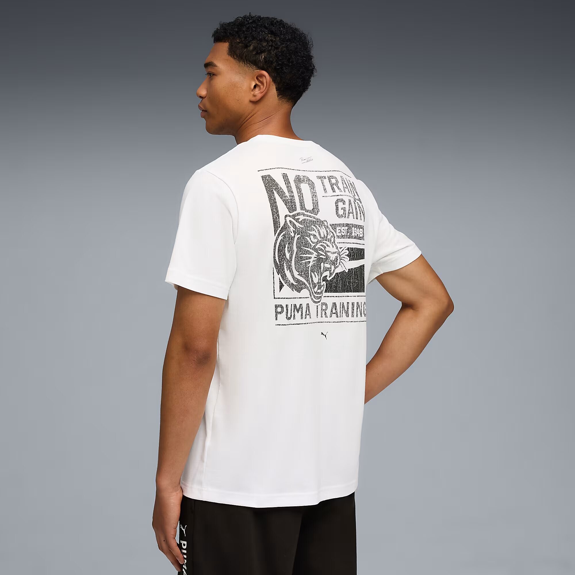 Футболка привлекает внимание оригинальным графическим принтом на спине, который добавляет динамичности и индивидуальности вашему стилю. Этот эффектный акцент превращает простой базовый элемент гардероба в стильную деталь, которая выгодно выделит Вас в любой компании. Лаконичный логотип Puma Cat на груди служит символом качества и принадлежности к миру спортивной моды.