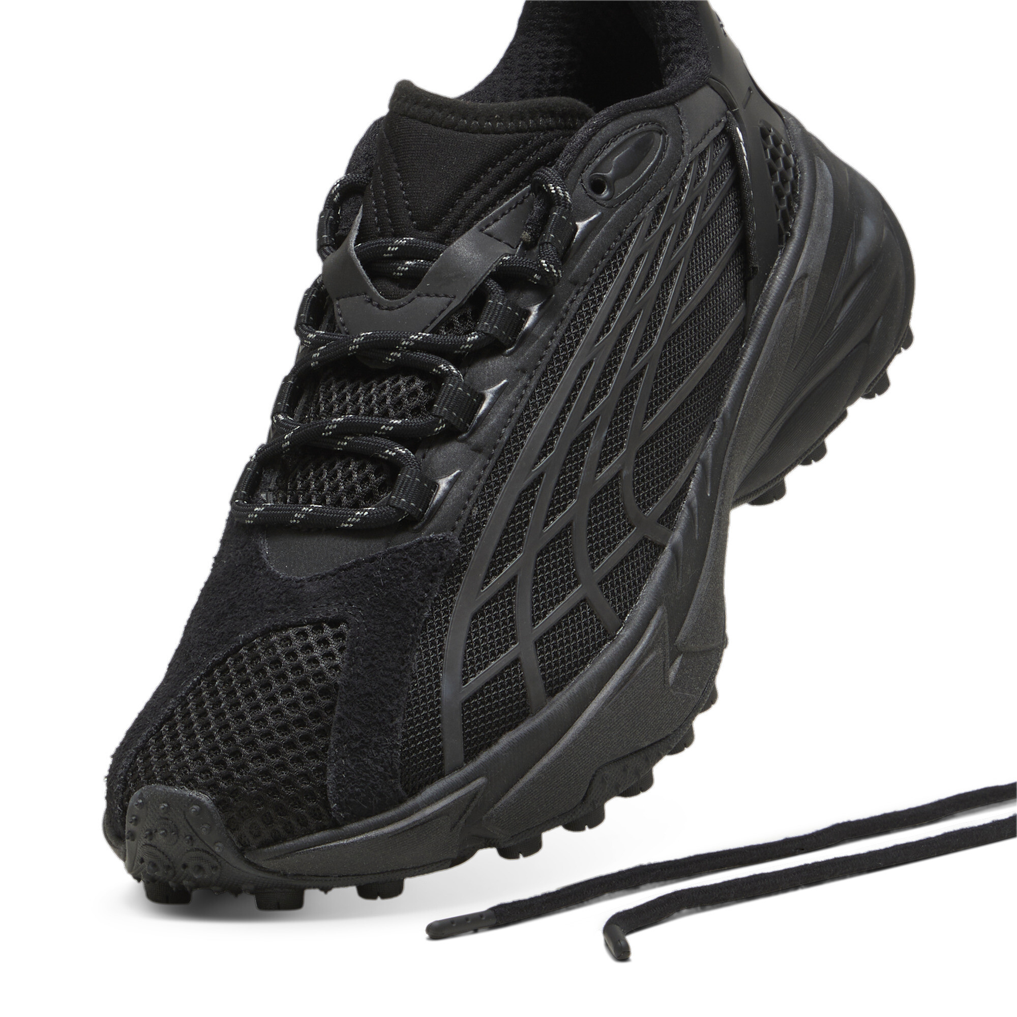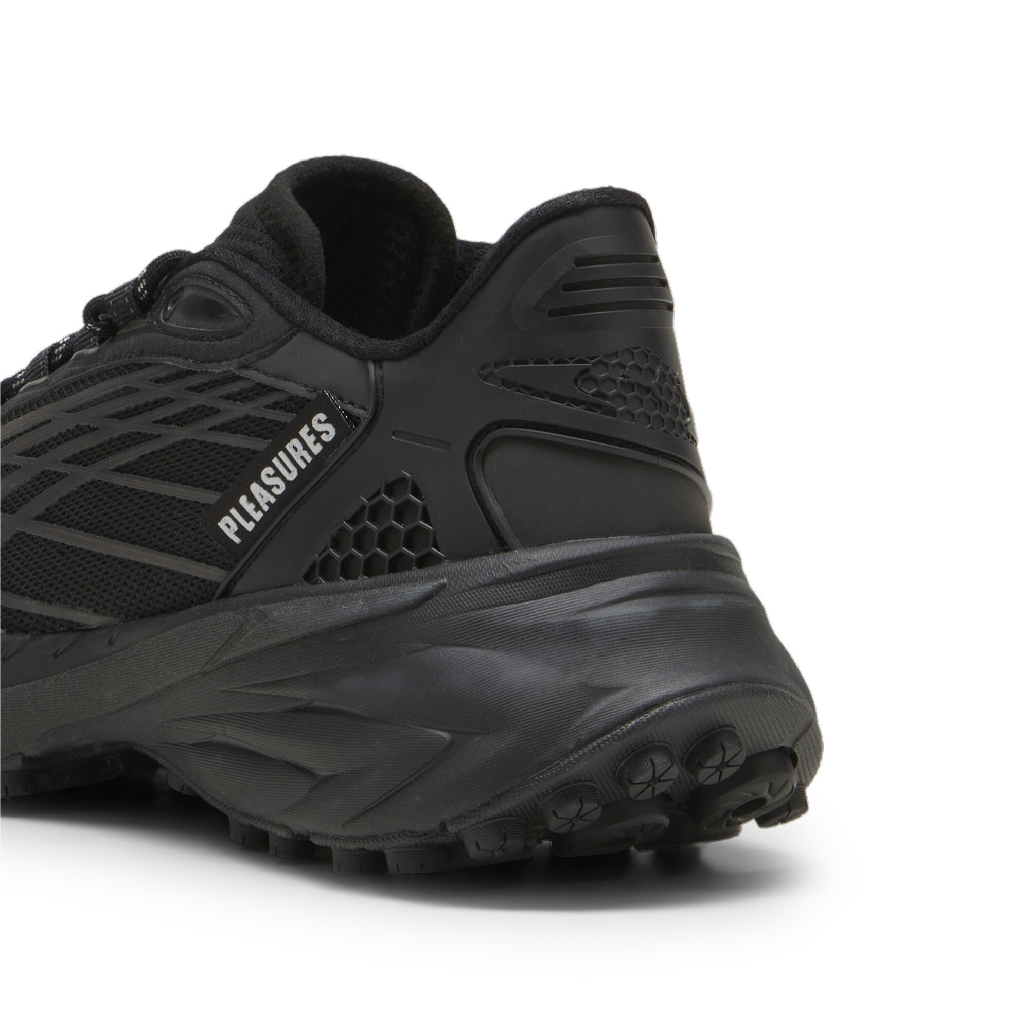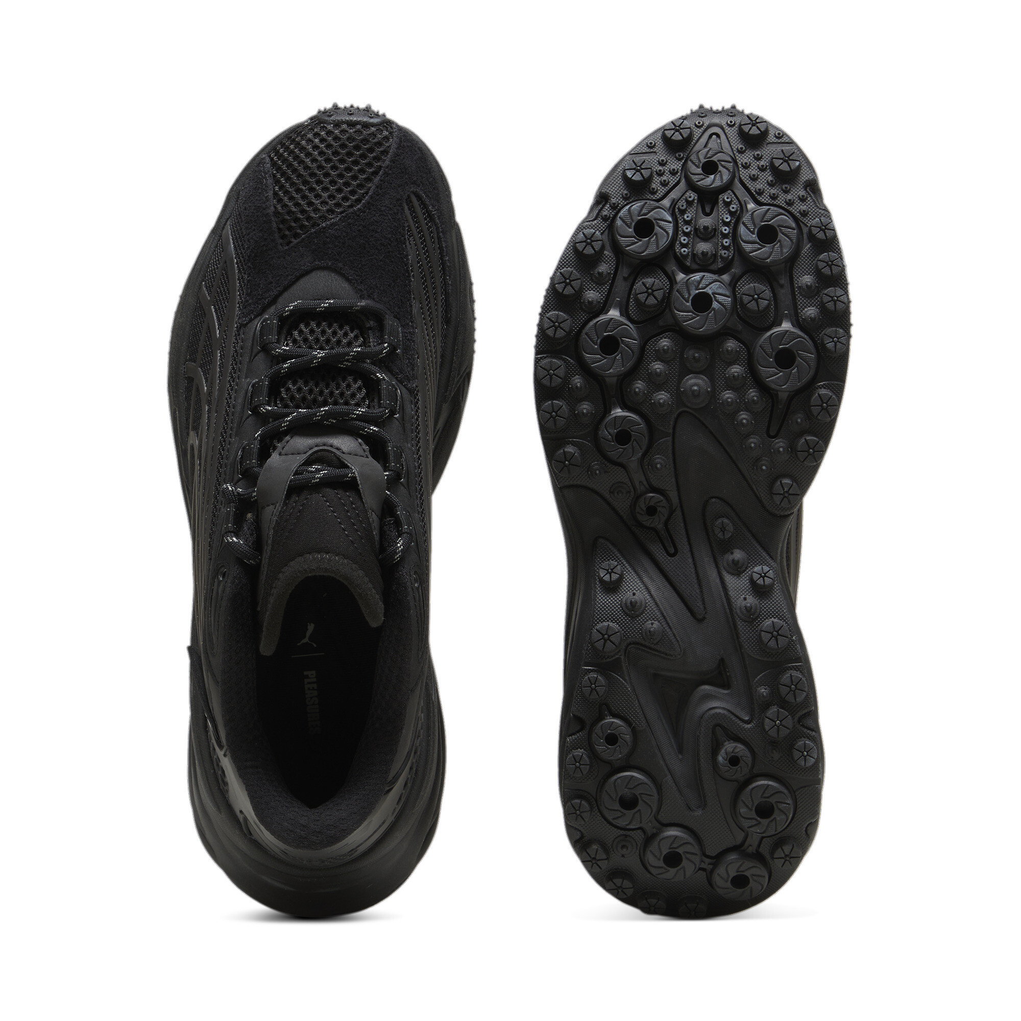 Вставки Formstrip с 3D-эффектом создают эффектный акцент, подчеркивая уникальность модели. Брендинг PUMA и PLEASURES тонко вплетен в дизайн, напоминая о эксклюзивном характере коллаборации.