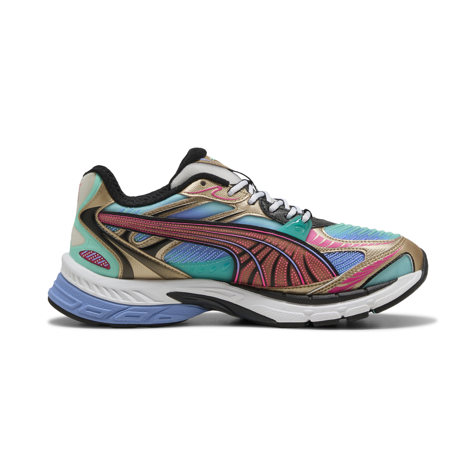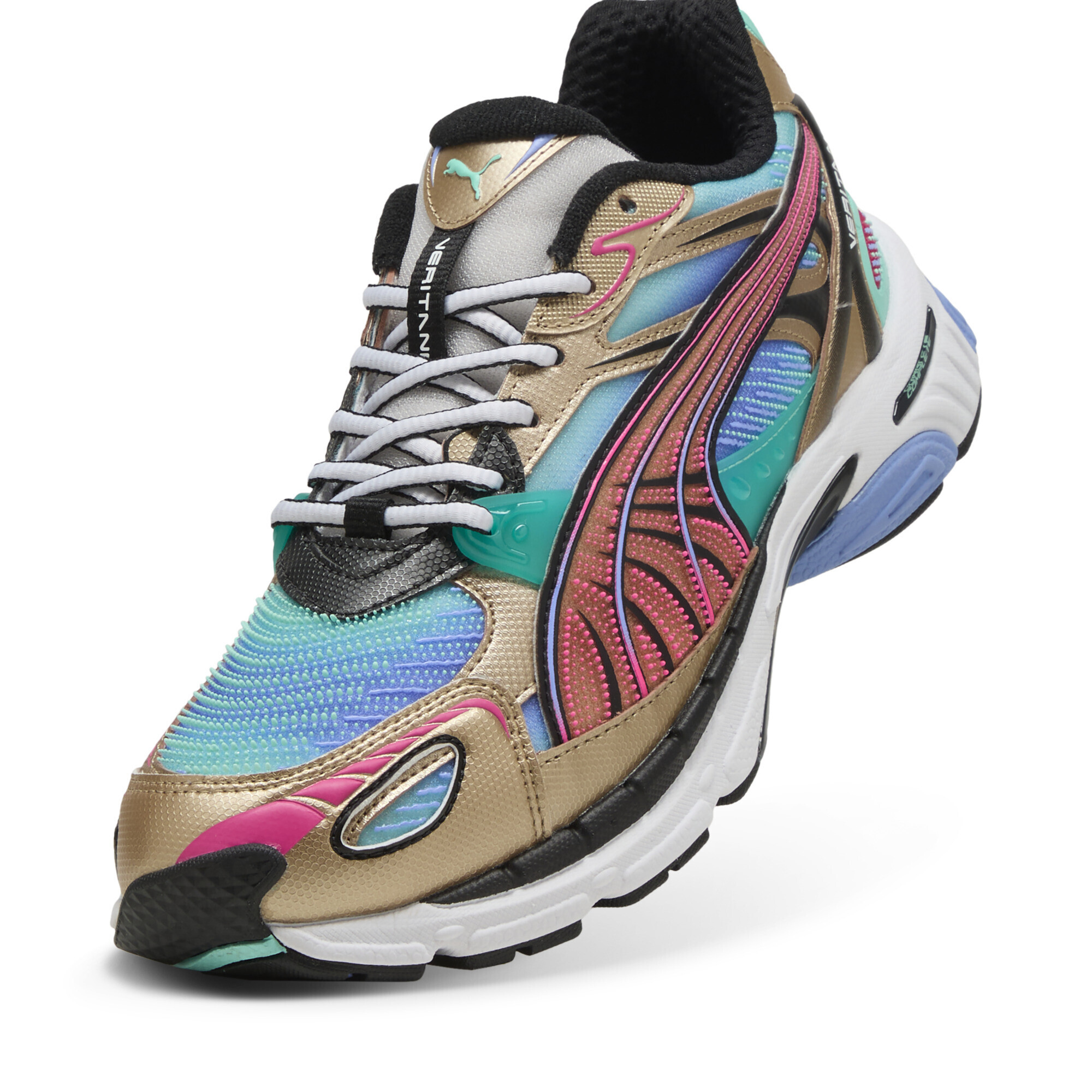 Кроссовки Puma Veritana Energy возвращают атмосферу 2000-х в современном прочтении. Яркий дизайн с контрастными цветовыми вставками и множественными акцентами выделяет эту модель, а текстурный сетчатый верх с синтетическими накладками сочетает лёгкость и надёжность.